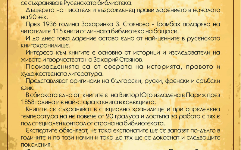 Сдружение ЗА СТАРИТЕ ЗИДАРИ е създадено на 26 февруари 2014 г. Непосредствените му цели са да насърчава изследователския дух, да съхранява и развива националните образователни и културни традиции, да опазва историческите паметници от епохата на Възраждането.